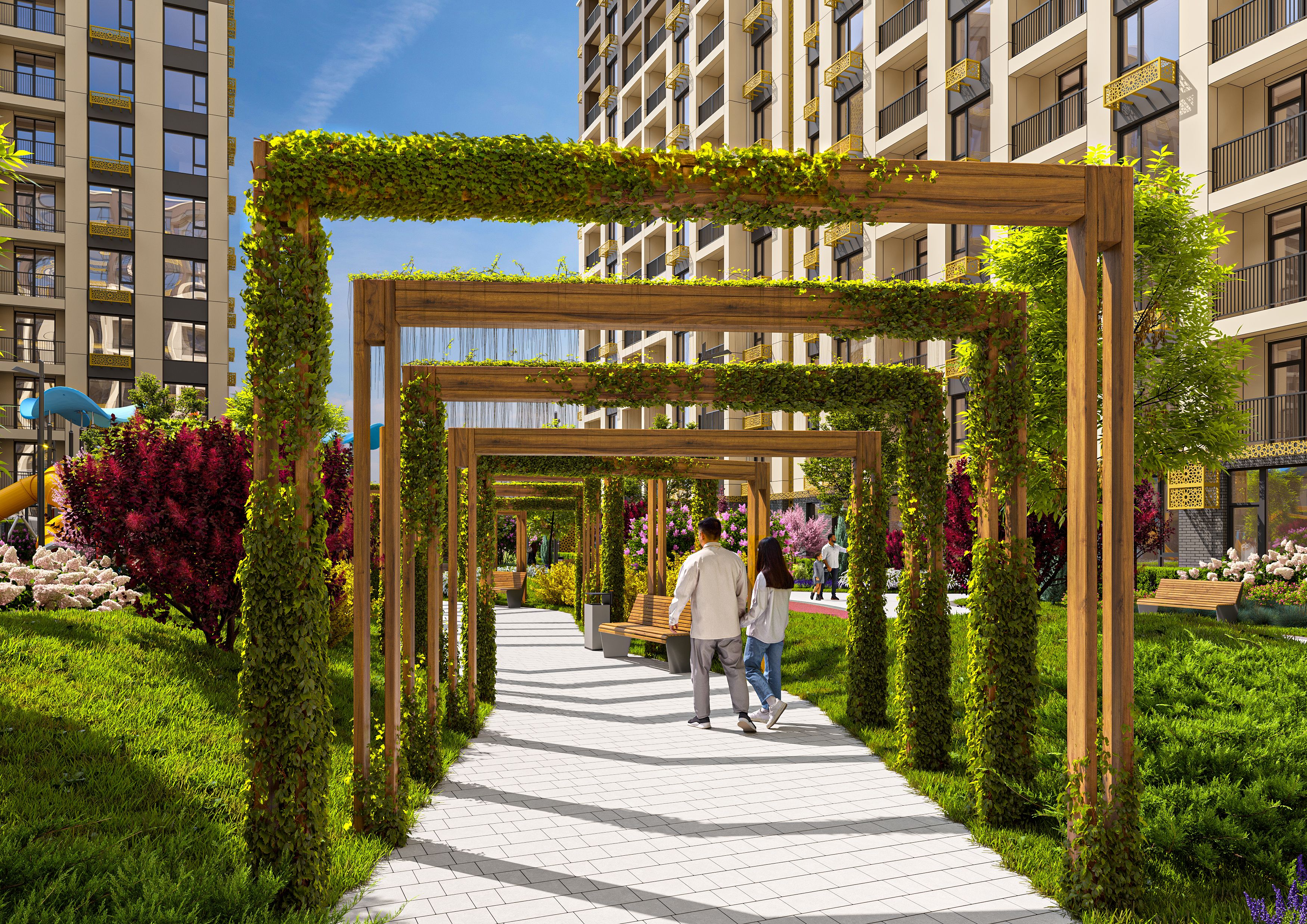 Главным преимуществом жилого комплекса NRG JOMIY - является безопасный двор. Одним из важных вопросов при выборе места для жизни являются благоустройство двора и придомовой территории.