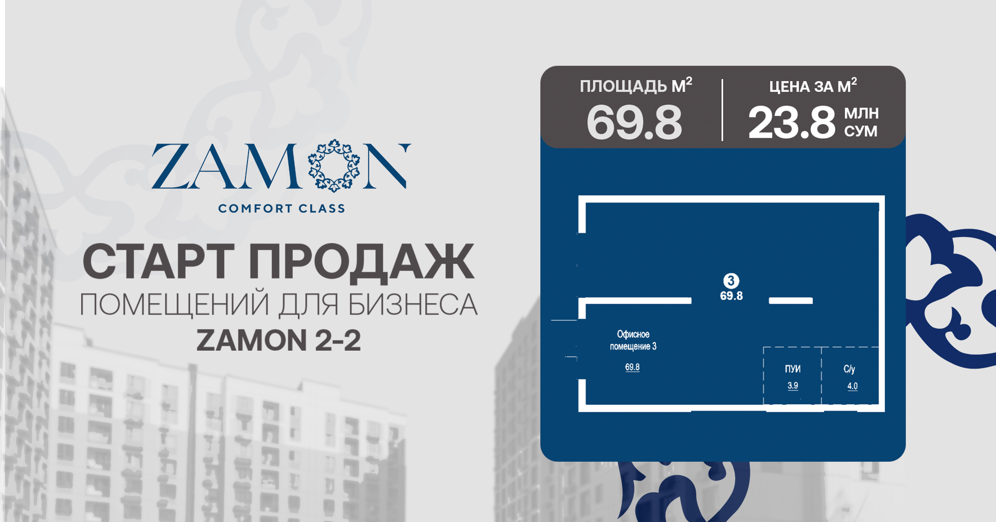 Старт продаж коммерческих помещений в Zamon 2-2