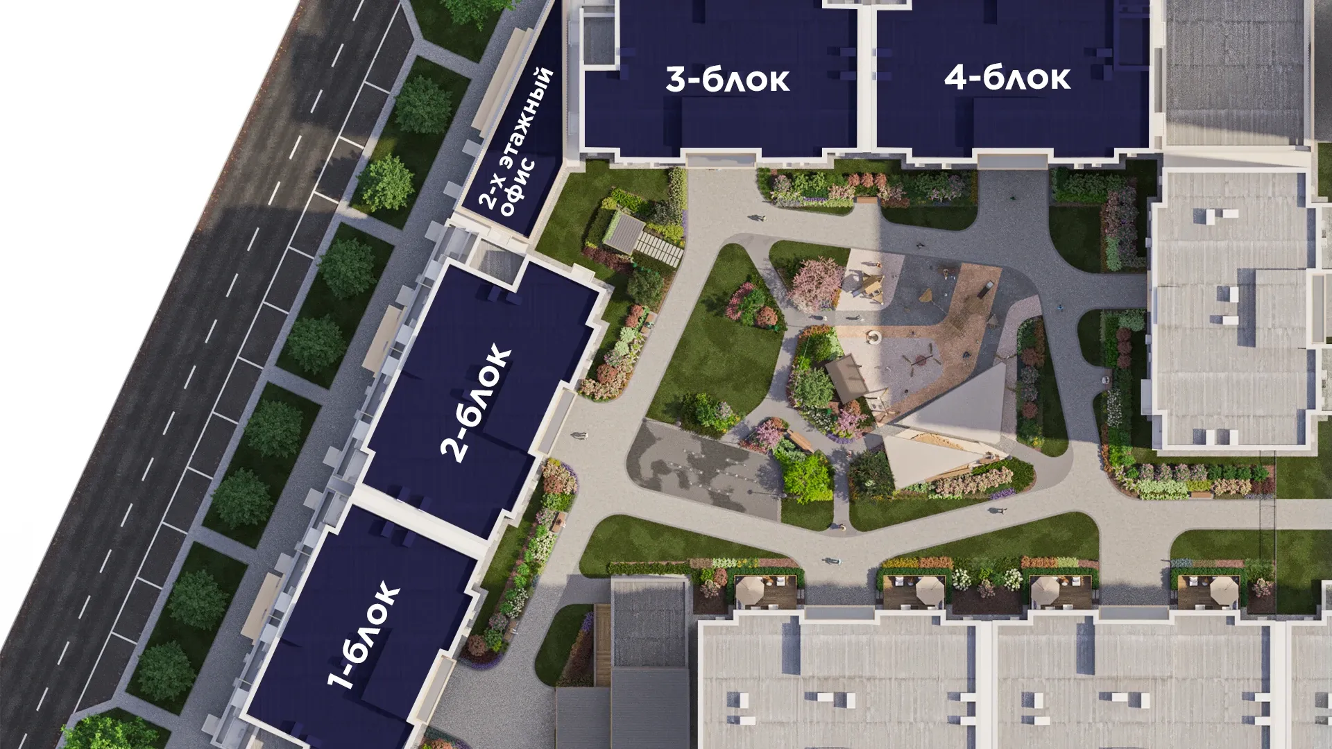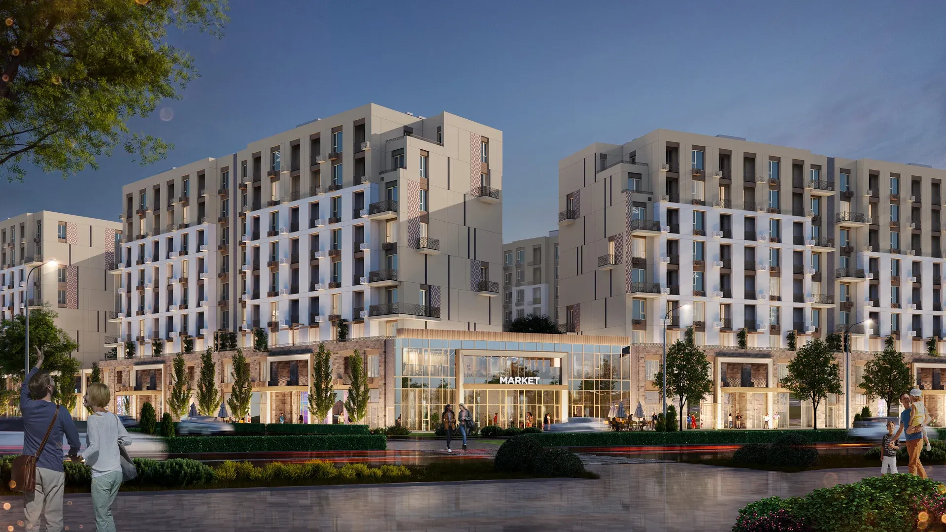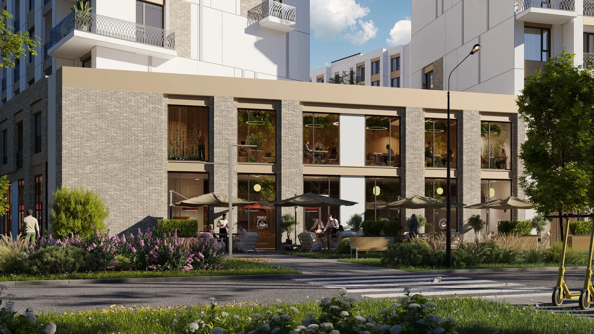 На первых этажах предусмотрены коммерческие помещения для магазинов, ресторанов и других предприятий, делая комплекс центром деловой активности и популярным местом для шопинга и отдыха.