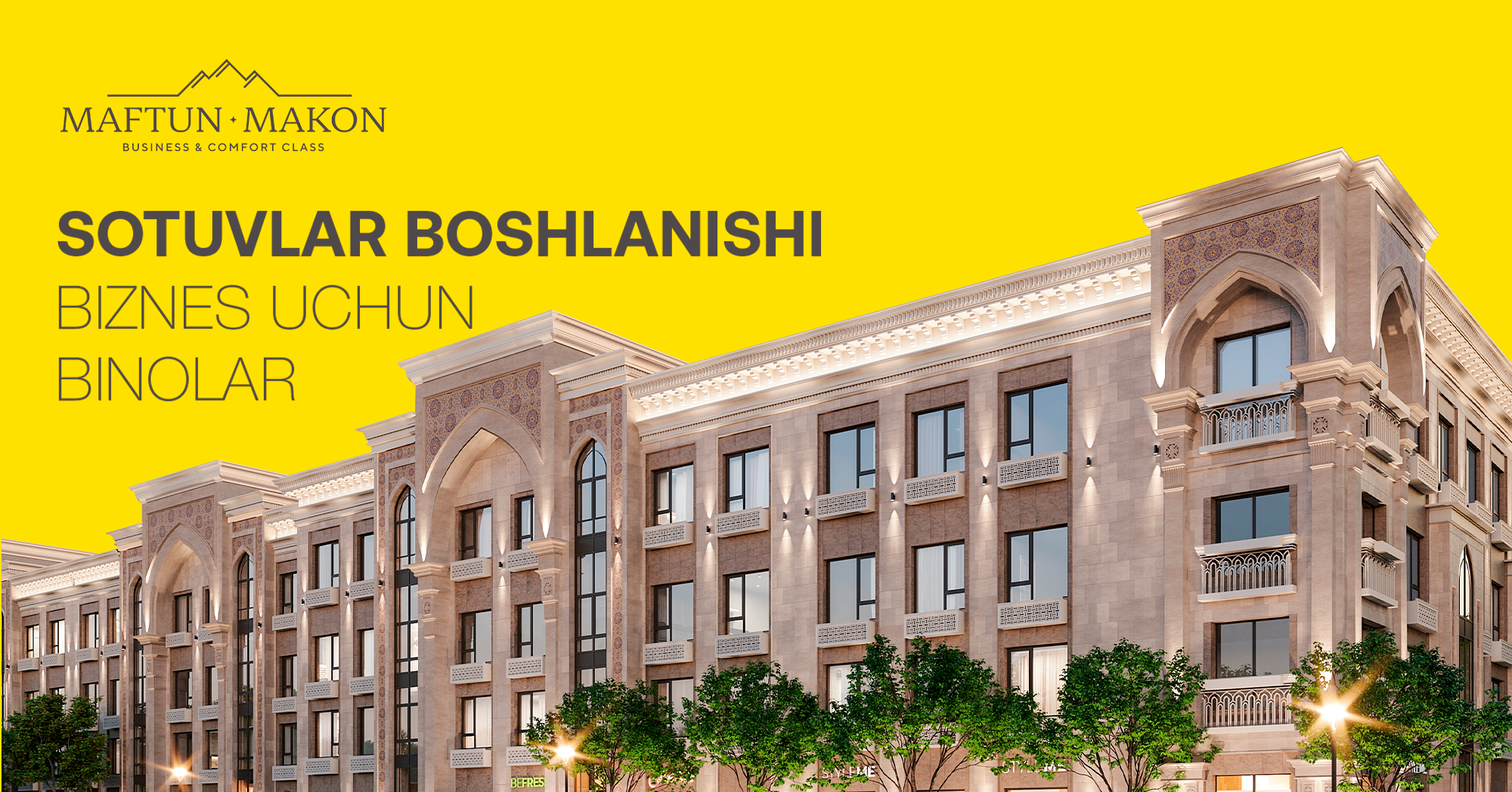 Maftun Makon turar-joy majmuasidagi tijorat binolari sotuvi ochildi — bu biznes uchun istiqbolli hududdan joy egallash va tayyor yashash muhitining bir qismiga aylanish uchun ajoyib imkoniyatdir.