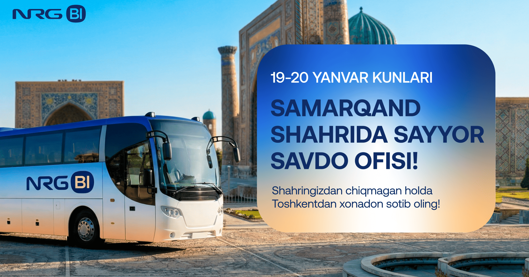 Tez orada — 19 va 20-yanvar kunlari — NRG-BI jamoasi sizning shahringizda vaqtinchalik savdo ofisini ochadi!